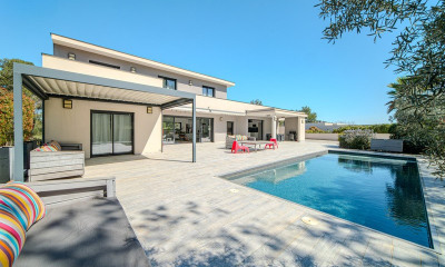 In un medio ambiente calmo, beneficiando di una bella vista questa dimora/villa (Casa contemporanea) 268 m², con un terreno di 1472 m² ha 6 vani con 5 stanze da letto. Ha ha una cucina Aperta, una piscina, una terrazza e un parcheggio. Riscaldamento : Autonomo. Varie : caminetto.