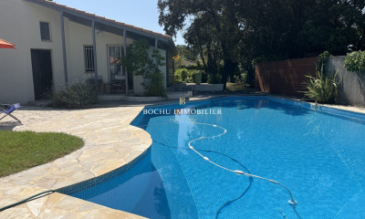 In un medio ambiente calmo, con orientazione sud-ovest questa dimora/villa220 m², costruita nel 1993, con un terreno di 1378 m² include 7 vani con 5 stanze da letto, una bagno e 2 WC. Ha è fornita di un soggiorno 107 m², di una cucina Cucina aperta attrezzata, di una piscina, di una terrazza, di un garage, di una cantina e di 5 parcheggi. Varie : caminetto.