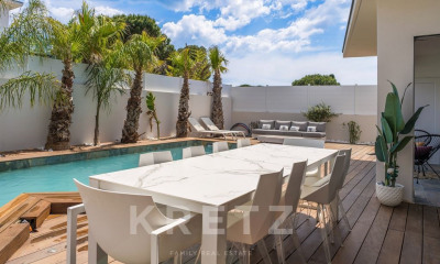 In un medio ambiente calmo, con orientazione sud questa dimora/villa (Casa architettonica) ammobiliata 272 m², costruita nel 2022, con un terreno di 612 m² comprende 6 vani con 5 stanze da letto, una bagno e 5 WC. Ha è dotata di una sala da pranzo, di una cucina Cucina aperta attrezzata, di una piscina, di una terrazza, di un garage e di 2 parcheggi. Riscaldamento : Pompa di calore. Varie : caminetto.