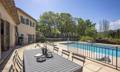 Beneficiando di una bella vista e orientazione sud questa dimora/villa (Villa) ammobiliata 239,68 m², costruita nel 1998, con un terreno di 2913 m² ha 9 vani con 5 stanze da letto, 2 bagni e 2 WC. Ha ha un soggiorno, una sala da pranzo, una cucina Nessuna, una piscina, 2 garages e una cantina. Riscaldamento : Gas a pavimento. Varie : caminetto, televisione via cavo.