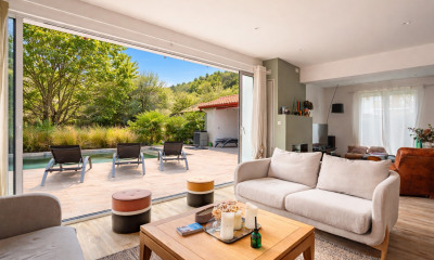 Beneficiando di una bella vista e orientazione sud-est questa dimora/villa314 m² include 7 vani con 5 stanze da letto, 3 bagni e 4 WC. Ha è fornita di una cucina Attrezzata, di un balcone, di una piscina, di una terrazza, di 2 garages e di un parcheggio. Riscaldamento : Gas. Varie : caminetto.