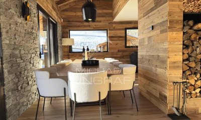 Beneficiando di una bella vista e orientazione sud-ovest questa dimora/villa (Chalet) nuova 359 m², con un terreno di 4017 m² comprende 2 vani con 9 stanze da letto. Ha è dotata di un soggiorno, di una cucina Attrezzata, di una piscina e di una cantina. Riscaldamento : Elettrico misto. Varie : caminetto, televisione via cavo.