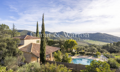 In un medio ambiente calmo, beneficiando di una bella vista e orientazione sud questa dimora/villa (Villa) 318 m², costruita nel 1994, con un terreno di 1600 m² include 8 vani con 5 stanze da letto, una bagno e 3 WC. Ha è fornita di un soggiorno, di una sala da pranzo, di una cucina Aperta, di una piscina e di una terrazza. Essa è rinnovata. Riscaldamento : A pavimento. Varie : caminetto. Onorario : 0.