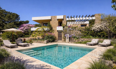 In un medio ambiente calmo, con orientazione sud questa dimora/villa215 m², costruita nel 2025, con un terreno di 1100 m² comprende 7 vani con 5 stanze da letto e 4 WC. Ha è dotata di una cucina Cucina aperta attrezzata, di una piscina, di una terrazza e di 10 parcheggi. Riscaldamento : Pompa di calore autonoma.