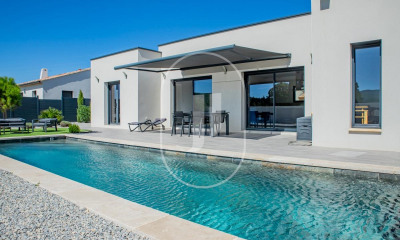 Beneficiando di una bella vista e orientazione sud questa dimora/villa (Villa) 156 m², costruita nel 2025, con un terreno di 500 m² comprende 5 vani con 4 stanze da letto e 2 WC. Ha è dotata di una cucina Nessuna, di una piscina, di una terrazza e di 2 parcheggi. Riscaldamento : Autonomo.