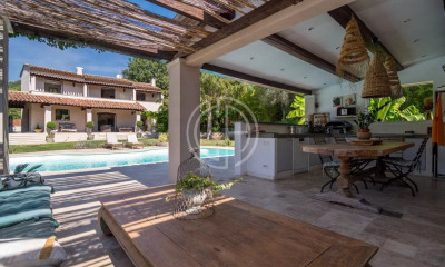 In un medio ambiente calmo, questa dimora/villa230 m², con un terreno di 1800 m² comprende 7 vani con 6 stanze da letto. Ha è dotata di un soggiorno, di una cucina Nessuna e di una piscina. Riscaldamento : Autonomo. Varie : caminetto.