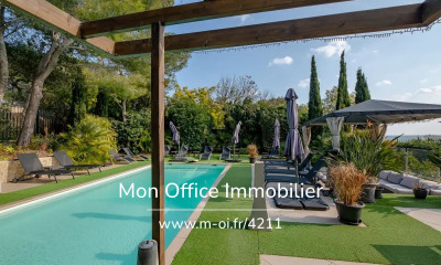 Beneficiando di una bella vista questa dimora/villa (Villa) 430 m², con un terreno di 1073 m² include 7 vani con 6 stanze da letto, 2 bagni e 4 WC. Ha è fornita di un soggiorno, di una cucina Nessuna, di una piscina, di una terrazza, di una cantina e di un parcheggio. Riscaldamento : Elettrico/a. Varie : caminetto.