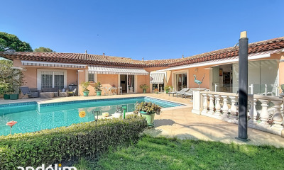 In un medio ambiente calmo, beneficiando di una bella vista questa dimora/villa (Villa) 204 m², costruita nel 2007, con un terreno di 1259 m² include 7 vani con 4 stanze da letto, 2 bagni e 3 WC. Ha è fornita di un soggiorno 56 m², di una cucina Cucina separata-chiusa attrezzata, di una piscina, di un garage, di una cantina e di 2 parcheggi. Riscaldamento : Autonomo gas a pavimento.