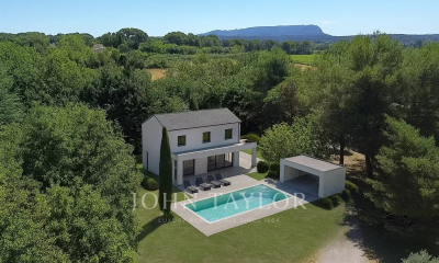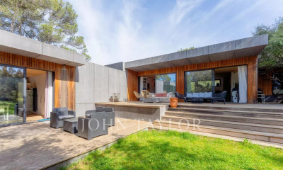Beneficiando di una bella vista e orientazione sud questa dimora/villa (Villa) ammobiliata 285 m², costruita nel 2019, con un terreno di 1500 m² include 8 vani con 4 stanze da letto e una bagno. Ha è fornita di un soggiorno, di una cucina Aperta, di una piscina, di una terrazza, di un garage e di 3 parcheggi. Riscaldamento : Pompa di calore autonoma.