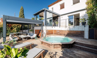 In un medio ambiente calmo, beneficiando di una bella vista e orientazione ovest questa dimora/villa105 m², costruita nel 2011, con un terreno di 1179 m² include 4 vani con 3 stanze da letto e 2 WC. Ha è fornita di un soggiorno, di una sala da pranzo, di una cucina Cucina aperta attrezzata, di una piscina, di una terrazza e di 3 garages. Riscaldamento : Autonomo.