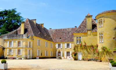 Cours intérieures du Château et de la Bergerie arborées et fleuries