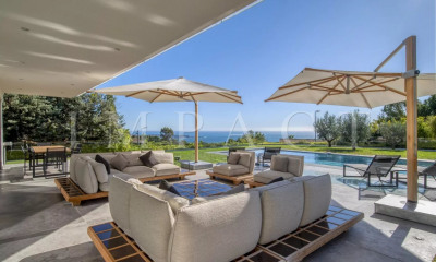 Le Domaine est situé dans une zone verte boisée, vue parc et mer.La Propriété se divise en 3 villas modernes, communiquant par une terrasse patio commune d' environ 250 m² par le jardin et par le niveau inférieur. Ces 3 villas de 1.000 m² au total sont joliment intégrées au parc paysagé et boisé d'1,5 hectare.