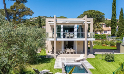 Enfin, notons que la Villa est idéale pour séjourner dans le Golfe en toutes saisons, car elle bénéficie d'une luminosité parfaite, inclue une salle de sport, se situe dans un environnement très calme, avec une piscine chauffée, et offre une circulation fluide pour se déplacer de Saint-Tropez à Sainte-Maxime. De plus, un jacuzzi sur la terrasse principale vous offrira un moment de détente unique. Grâce à sa vue à couper le souffle, la maison capte tous les regards depuis chacun de ses recoins. Les terrasses en quinconce, avec leurs coins intimes et ombragés, filent sur la Méditerranée et sauront occuper vos journées de farniente ou vos soirées festives, à l'abri des palmiers azuréens.
