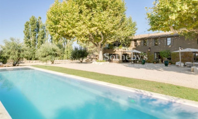 En franchissant le portail en fer forgé, une allée pavée vous guide jusqu'à un vaste espace de stationnement pouvant accueillir plus de 20 voitures. Le terrain paysagé comprend un terrain de pétanque, une piscine chauffée de 18x5 m, de nombreuses terrasses, un espace repas extérieur ainsi qu'une douche extérieure, parfait pour profiter des belles journées ensoleillées.