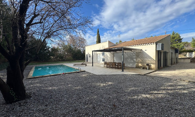 En franchissant le portail en fer forgé, une allée pavée vous guide jusqu'à un vaste espace de stationnement pouvant accueillir plus de 20 voitures. Le terrain paysagé comprend un terrain de pétanque, une piscine chauffée de 18x5 m, de nombreuses terrasses, un espace repas extérieur ainsi qu'une douche extérieure, parfait pour profiter des belles journées ensoleillées.