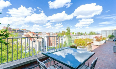 UCCLE – Ideaal gelegen tussen het Brugmannpark en het Wolvendaelpark, in een gegeerde en groene residentiële omgeving, uitzonderlijk PENTHOUSE-APPARTEMENT (4 slpks / 3 badk.) van ±326 m² (EPB) met prachtige terrassen van ±200 m² rondom het volledige appartement en een dubbele garagebox (optioneel). Gelegen op de 7de en hoogste verdieping, onderscheidt deze lichtrijke duplex zich door zijn royale volumes, harmonieuze indeling en exclusieve karakter. Het appartement omvat een ruime inkomhal met vestiaire en gastentoilet, schitterende leefruimtes van ±50 m² met open haard, een stijlvolle bureau of salon van ±25 m² en een volledig uitgeruste keuken met toegang tot een meer intiem terras. De nachthal leidt naar een ruime master suite met dressing en volledige badkamer, twee bijkomende slaapkamers, een vierde slaapkamer of bureau en een badkamer met wasruimte. Alle slaapkamers geven rechtstreeks uit op de ideaal georiënteerde terrassen, wat zorgt voor een uitzonderlijke lichtinval en een vloeiende overgang tussen binnen en buiten. Op de bovenverdieping bevindt zich een polyvalente ruimte met haardcassette, douchekamer en keuken, met toegang tot een tweede terras dat een panoramisch uitzicht biedt over de Brusselse skyline. In de kelder: dubbele garagebox en twee kelders. Aluminium ramen met dubbele beglazing, veiligheidsdeur, videofoon, alarmsysteem, zonwering, kwaliteitsvolle materialen. Elektriciteit conform tot 2031. EPB C-. Een zeldzaam pand met indrukwekkende volumes en uitzon Ref: '7587903'