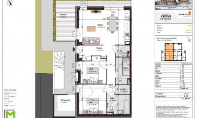 Dit appartement nieuw 70 m² heeft 4 kamers waarvan 3 slaapkamers en 1 badkamer. Dit appartement is voorzien van een Geen keuken en een parkeerplaats. andere : intercom, digicode.