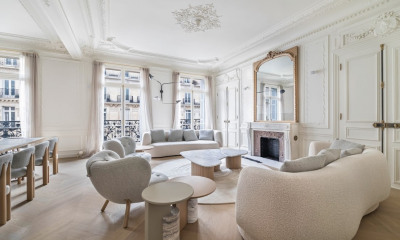 Op het zuid-west gelegen dit appartement130 m², gebouwd in 1880, in een flatgebouw van 6 verdiepingen heeft 5 kamers waarvan 3 slaapkamers en 3 WC's. Dit appartement is voorzien van een woonkamer 46,24 m², een Open en ingericht keuken en een kelder. Zij bevindt zich op de 3de de verdieping met lift. Verwarming : Tersoonlijk electrisch. andere : parketvloer, openhaard.