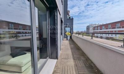 Dit appartement100,89 m², gebouwd in 2010, in een flatgebouw van 7 verdiepingen heeft 4 kamers waarvan 3 slaapkamers en 2 badkamers. Dit appartement is voorzien van een Geen keuken en een balkon. Zij bevindt zich op de 6de de verdieping met lift. Verwarming : Tersoonlijk electrisch. andere : intercom.