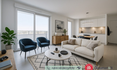 Op het west gelegen dit appartement nieuw 62 m² bevat 2 kamers waarvan 1 slaapkamer en 1 badkamer. Dit appartement heeft van een Geen keuken, van een terras en van een parkeerplaats. Zij bevindt zich op de 3de de verdieping met lift. andere : digicode.