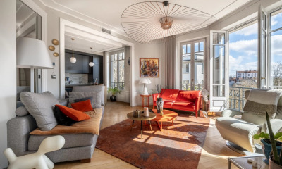 Op het zuid-west gelegen dit appartement190,1 m², gebouwd in 1860, in een flatgebouw van 5 verdiepingen bevat 5 kamers waarvan 3 slaapkamers en 1 WC. Dit appartement heeft van een woonkamer, van een eetkamer, van een Aparte en ingericht keuken, van 2 balkons en van een kelder. Zij bevindt zich op de 2de de verdieping met lift. Verwarming : "individual gaz". andere : intercom, parketvloer, openhaard. Honoraria : 6.25.