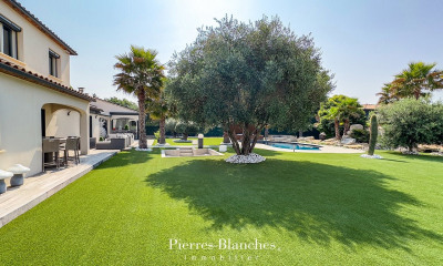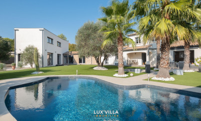 In een rustige buurt, dit huis (Hedendaagse woning) 278 m², gebouwd in 2022, met een perceel oppervlakte van 1370 m² bevat 6 kamers waarvan 4 slaapkamers, 1 badkamer en 5 WC's. Dit huis (Hedendaagse woning) heeft van een woonkamer, van een Open en ingericht keuken, van een zwembad, van 2 garages en van 2 parkeerplaatsen.