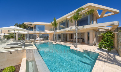 Op slechts 5 minuten van het centrum van Ibiza en de haven, is Villa Essence een spectaculaire nieuwbouwwoning, volledig afgewerkt, gemeubileerd en klaar om in te trekken. De bevoorrechte locatie biedt indrukwekkende uitzichten op de zee en Formentera vanuit elke kamer. Het pand combineert een eigentijds architectonisch ontwerp met hoogwaardige materialen van de hoogste kwaliteit. De witte marmeren vloeren, afkomstig uit Griekenland, evenals de binnen- en buitenafwerkingen, zorgen voor een gevoel van elegantie en helderheid. Grote ramen met minimalistische profielen en geïntegreerde natuurhouten kozijnen versterken de verfijnde en moderne stijl. Keuken en badkamers zijn volledig uitgerust, met designafwerkingen en maximale aandacht voor detail. Het interieur is ontworpen door de gerenommeerde Eric Kuster, die elegante, warme en uitnodigende omgevingen heeft gecreëerd, waarbij elk stuk perfect past om een unieke esthetische ervaring te bieden. Aan de buitenzijde beschikt de villa over een groot chill-out terras met een zwembad en een barbecuegebied, ideaal om te genieten van het Ibiza-klimaat overdag of om onvergetelijke avonden te organiseren met zorgvuldig geplande sfeerverlichting. Villa Essence is uitgerust met de nieuwste technologieën: een geïntegreerd geluidssysteem, supersnel WiFi, beveiligingscamera's en volledige huisautomatisering, wat comfort, veiligheid en een levensstijl zonder concessies garandeert.
