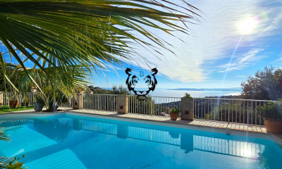 Aux Issambres, prachtig zeezicht voor deze villa van ongeveer 240 m².Gelegen in een residentiële wijk, omvat ze op gelijkvloers een ruime woon-/eetkamer met een open ingerichte keuken.Een mooi terras dat doorloopt naar de randen van het infinity zwembad.Een master suite met een eigen badkamer, kleedruimte en toilet, opent ook uit op het terras.Op de begane grond bevinden zich vier mooie slaapkamers, allemaal met toegang tot een terras, en twee badkamers.Een dubbele garage en een kelder maken deze woning compleet.