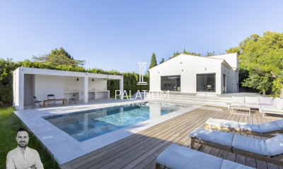 Op het zuid-west gelegen dit huis (Villa) 235 m², met een perceel oppervlakte van 683 m² heeft 8 kamers waarvan 5 slaapkamers, 1 badkamer en 3 WC's. Dit huis (Villa) is voorzien van een eetkamer, een Open en ingericht keuken en een terras. Verwarming : "individual underfloor". andere : parketvloer.