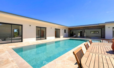 Op het zuid gelegen dit huis377 m², gebouwd in 2010, met een perceel oppervlakte van 2500 m² bestaat uit 7 kamers waarvan 5 slaapkamers, 2 badkamers en 3 WC's. Dit huis is uitgerust van van een woonkamer, van een Geen keuken, van een zwembad, van een terras, van een garage en van een kelder. Verwarming : Vloer verwarming.