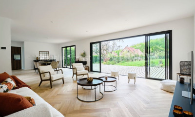 Met een prachtig uitzicht dit huis (Architectenwoning) 230 m², met een perceel oppervlakte van 1000 m² bestaat uit 6 kamers waarvan 5 slaapkamers, 1 badkamer en 2 WC's. Dit huis (Architectenwoning) is uitgerust van van een woonkamer 30 m², van een eetkamer 28 m², van een Ingericht keuken, van een terras en van 3 parkeerplaatsen. Zij is compleet gerenoveerd. Verwarming : Electrisch. andere : parketvloer. Honoraria : 2.88.