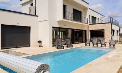In een rustige buurt, met een prachtig uitzicht en zuid-west gelegen dit huis (Hedendaagse woning) 285 m², met een perceel oppervlakte van 1159 m² heeft 7 kamers waarvan 5 slaapkamers, 2 badkamers en 3 WC's. Dit huis (Hedendaagse woning) is voorzien van een woonkamer 100 m², een Open keuken, 2 balkons, een zwembad, een terras, 2 garages en 2 parkeerplaatsen. Verwarming : Omkeerbaar centraal aircosysteem. andere : parketvloer.