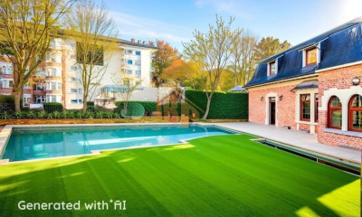 Vlakbij het Ter Kamerenbos, winkels en scholen, prachtige driezijdige woning met een oppervlakte van ± 350 m² met een prachtige tuin en terras. Deze charmante, smaakvol gerenoveerde woning is als volgt samengesteld: Ruime inkomhal van ± 17 m², gastentoilet, lichte woonkamer van ± 24 m² met functionele open haard, eetkamer van ± 18 m², keuken met ontbijthoek van ± 15 m², toegang tot het noordelijke achterterras van ± 13 m² en een prachtige, niet-overdekte tuin van ± 400 m². Op ??de bovenste verdiepingen, nachthal, een hoofdslaapkamer van ± 20 m², 2 extra slaapkamers van ± 14,5 m² en 16,5 m², balkon aan de voorzijde, doucheruimte, apart toilet en wasruimte. Op de bovenverdieping, 2 slaapkamers van ± 26 m² en 18 m², badkamer met toilet. Aan de tuinzijde, grote studio omgebouwd tot kantoor en fitnessruimte met douchekamer, ideaal voor vrij beroep met een oppervlakte van ± 55 m². Achter in de tuin, klein huisje van ± 40 m². Overige: Parkeerplaats aan de voorzijde, conforme elektra, geïsoleerd dak, gasketel, dubbel glas, alarminstallatie, waterontharder, PEB: E. De woning geniet van een rustige en groene ligging. Om snel te ontdekken!! Ref: '7339789'