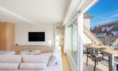 Magnifiek gerenoveerd duplex appartement met 3 slaapkamers te koop in Knokke Dit prachtig gerenoveerde duplex appartement is ideaal gelegen in de Diksmuidestraat, vlak bij het IJzerpark in Knokke. Dankzij de rustige maar centrale ligging geniet u hier van het beste van beide werelden. Het appartement beschikt over een mooie en ruime leefruimte met ingemaakte kasten en toegang tot het terras aan de voorzijde. De ruime leefkeuken met eetplaats vormt het hart van het appartement en is perfect voor gezellige momenten met familie of vrienden. Verder vindt u op deze verdieping een praktische berging en een apart gastentoilet. Op de bovenverdieping bevinden zich drie mooie slaapkamers, telkens voorzien van ingemaakte kasten. Daarnaast zijn er zowel een douchekamer als een badkamer met ligbad, wat zorgt voor extra comfort voor het hele gezin. Extra troeven zijn de kelder en de fietsenberging in het gebouw. Een instapklaar appartement op een uitstekende locatie in Knokke – ideaal als vaste woonst, tweede verblijf of investering. Ref: 'SKN_PUB_7497625'