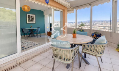 Dit appartement gemeubileerd 84 m², gebouwd in 1970, in een flatgebouw van 8 verdiepingen bevat 3 kamers waarvan 2 slaapkamers en 2 badkamers. Dit appartement heeft van een woonkamer, van een Open en ingericht keuken, van een terras, van een kelder en van een parkeerplaats. Zij bevindt zich op de 8de de verdieping met lift. andere : Bewaker.