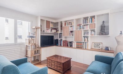 Dit appartement102 m², gebouwd in 1953, in een flatgebouw van 9 verdiepingen bevat 4 kamers waarvan 3 slaapkamers, 2 badkamers en 1 WC. Dit appartement heeft van een woonkamer 31 m² en van een Geen keuken. Zij bevindt zich op de 4de de verdieping met lift. andere : intercom, digicode, Bewaker, kabeltelevisie. Honoraria : 4.511.