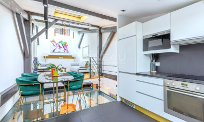 Dit appartement117 m² bevat 5 kamers waarvan 2 slaapkamers. Dit appartement heeft van een woonkamer, van een Aparte keuken en van een kelder. Zij bevindt zich op de 1ste de verdieping. Verwarming : "collective fuel oil". andere : parketvloer. Honoraria : 4.327.