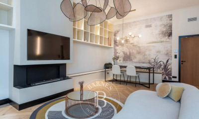 Op het oost-west gelegen dit appartement111,24 m², gebouwd in 1900, in een flatgebouw van 6 verdiepingen bestaat uit 3 kamers waarvan 2 slaapkamers en 2 WC's. Dit appartement is uitgerust van van een woonkamer 59 m², van een Open en ingericht keuken en van een kelder. Zij bevindt zich op de 3de de verdieping met lift. Verwarming : "individual gaz". andere : parketvloer, openhaard.