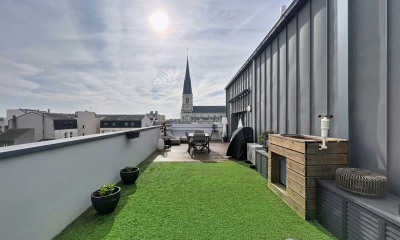 Op het zuid-west gelegen dit appartement nieuw 124 m² bestaat uit 5 kamers waarvan 4 slaapkamers, 1 badkamer en 2 WC's. Dit appartement is uitgerust van van een Geen keuken, van een balkon, van een terras, van een garage en van een parkeerplaats. Zij bevindt zich op de 5de de verdieping met lift. andere : intercom, digicode.