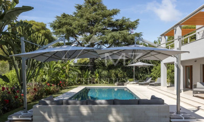 Op het zuid-west gelegen dit huis (Hedendaagse woning) gemeubileerd 412,7 m², gebouwd in 1980, met een perceel oppervlakte van 1840 m² bestaat uit 10 kamers waarvan 4 slaapkamers, 3 badkamers en 3 WC's. Dit huis (Hedendaagse woning) is uitgerust van van een woonkamer 90 m², van een eetkamer, van een Aparte keuken, van een zwembad, van een terras en van 2 parkeerplaatsen. andere : openhaard.