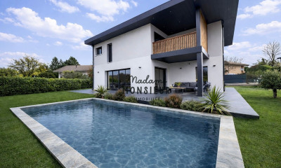 Op het noord-west gelegen dit huis208 m² bevat 5 kamers waarvan 4 slaapkamers en 2 WC's. Dit huis heeft van een woonkamer, van een Open en ingericht keuken, van een zwembad, van een terras, van een garage en van 5 parkeerplaatsen. Verwarming : "individual".