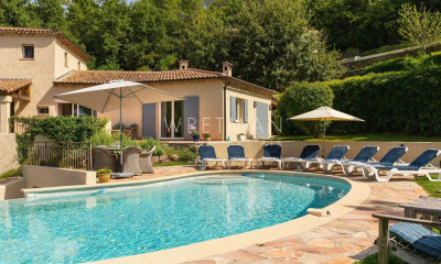 Met een prachtig uitzicht en zuid-west gelegen dit huis (Villa) 260 m², gebouwd in 2009, met een perceel oppervlakte van 21000 m² heeft 5 kamers waarvan 4 slaapkamers. Dit huis (Villa) is voorzien van een woonkamer 110 m², een Open en ingericht keuken, een zwembad, een terras, 3 garages en 6 parkeerplaatsen. Verwarming : Omkeerbaar aircosysteem.