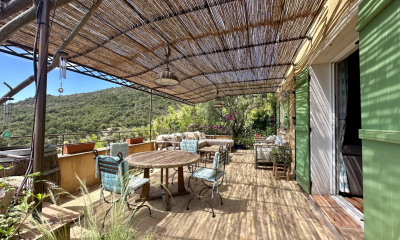 In een rustige omgeving met een prachtig uitzicht op de wijngaarden biedt deze recente villa 172 m² woonoppervlak op een perceel van ongeveer 1.020 m². Ze bestaat uit een inkomhal die uitkomt op een ruime, lichte woonkamer met een volledig uitgeruste open keuken, met toegang tot de tuin en het terras. Op de mezzanine bevindt zich een kantoorruimte, een mooie slaapkamer die momenteel als kleedkamer wordt gebruikt, evenals een badkamer met toilet. De master suite heeft een eigen badkamer met toilet en een kleedkamer. Een andere slaapkamer met mezzanine beschikt ook over een eigen badkamer met toilet. Buiten wacht een schitterend zwembad van 14 meter op u, evenals een ruime parkeerplaats, een garage en een wasruimte. Voor meer woningen, bekijk onze website: www.grimaudimmo.com