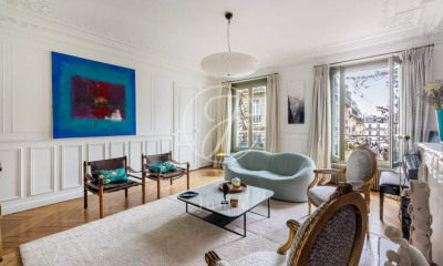 Beneficiando de uma bela vista e orientação sul apartamento137,21 m², construído em 1880, num edifício de 6 andares tem 5 assoalhadas das quais 3 quartos, 1 casa de banho e 1 WC. Ele e composto duma sala de estar 27,25 m², duma cozinha Nenhuma, dum terraço e duma cave. Ele está situado no primeiro andar com elevador. Aquecimento : Radiador individual a gás. Diversos : intercomunicador, código de porta, lareira.