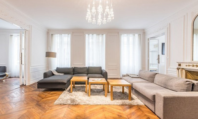 Com orientação este-oeste apartamento mobilado 135 m², construído em 1890 tem 5 assoalhadas das quais 2 quartos, 1 casa de banho e 2 WC. Ele e composto duma sala de estar 40 m², duma sala de jantar 20 m² e duma cozinha Separada equipada. Aquecimento : Gás. Diversos : intercomunicador, código de porta, lareira, TV cabo.