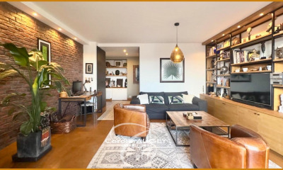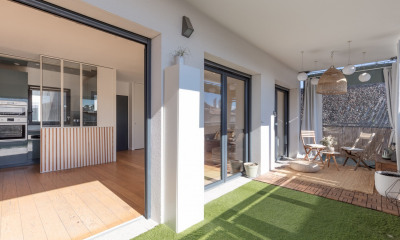 Beneficiando de uma bela vista apartamento (Duplex) 127 m², construído em 2016 em duplex, num edifício de 3 andares tem 5 assoalhadas das quais 4 quartos, 1 casa de banho e 2 WC. Ele contém uma sala de estar 45,97 m², uma cozinha Americana equipada, um terraço e 2 garagens. Ele está situado no terceiro andar com elevador. Diversos : intercomunicador. Honorários : 4.56.