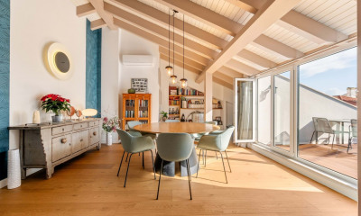 Com orientação norte apartamento148,8 m² compreende 3 assoalhadas das quais 2 quartos, 3 casas de banho e 1 WC. Ele se compõe duma sala de estar 48,6 m², duma Kitchenette e dum terraço. Diversos : intercomunicador.