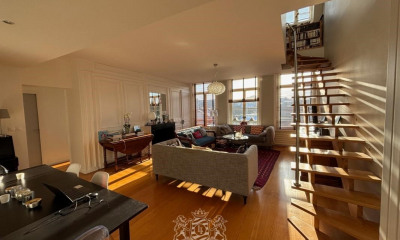 Apartamento (Duplex) 160 m² em duplex tem 4 assoalhadas das quais 3 quartos. Ele contém uma sala de estar 90 m², uma cozinha Nenhuma, uma garagem e uma cave. Honorários : 5.