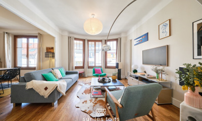 Beneficiando de uma bela vista e orientação sul-oeste apartamento100 m², construído em 2023, num edifício de 6 andares tem 4 assoalhadas das quais 3 quartos, 2 casas de banho e 2 WC. Ele contém uma sala de estar 39 m², uma cozinha Americana equipada, um terraço, uma garagem e uma cave2,4 m². Ele está situado no sexto andar com elevador. Aquecimento : Misto. Diversos : intercomunicador, código de porta, parquet, TV cabo.
