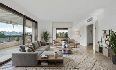 Beneficiando de uma bela vista e orientação este apartamento163 m², construído em 1996, num edifício de 4 andares compreende 4 assoalhadas das quais 2 quartos, 1 casa de banho e 3 WC. Ele se compõe duma sala de estar 75 m², duma cozinha Americana, dum terraço e de 3 garagens. Ele está situado no quarto andar com elevador. Aquecimento : Ar condicionado reversível individual. Diversos : intercomunicador, código de porta.